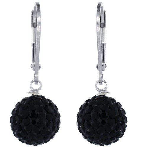 This beautiful 10mm Sterling Silver Round Black Disco Crystal Ball Lever Back Earrings 1.2 inch Long For Children & Women by Double Accent is meticulously crafted in gleaming and durable Sterling Silver.../ 10mm Sterling Silver Round Black Disco Crystal Ball Lever Back Earrings 1.2 inch Long For Children & Women / disco ball